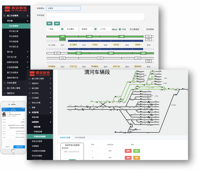 施工调度管理系统是一套对地铁施工实时组织和监控的计算机辅助信息系统。该系统对作业时间、作业区域等地铁施工所需的资源进行统筹管理,解决了人工管理中行车通告编制工作量大、冲突检测难免疏漏、请销点长时间排队等候、计划统计工作量大等问题,确保地铁施工安全、高效、有序地进行。
